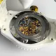 Корпус часов выполнен из прочной и долговечной керамики, что обеспечивает исключительную устойчивость к царапинам и повреждениям. При этом керамика отличается невероятной легкостью и комфортом при ношении. Защитное стекло изготовлено из закаленного минерала, гарантирующего максимальную защиту от механических повреждений.